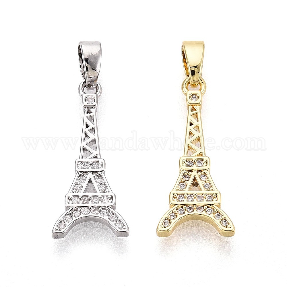 Латунные микропаве прозрачные подвески с фианитом, эйфелева башня подвески