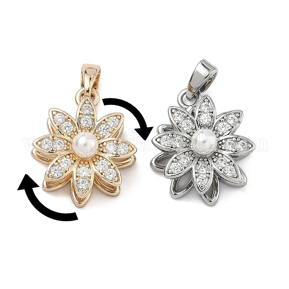 Вращающиеся подвески из латуни с микропаве и прозрачными кубическими циркониями., с ABS имитации жемчуга, долговечный,