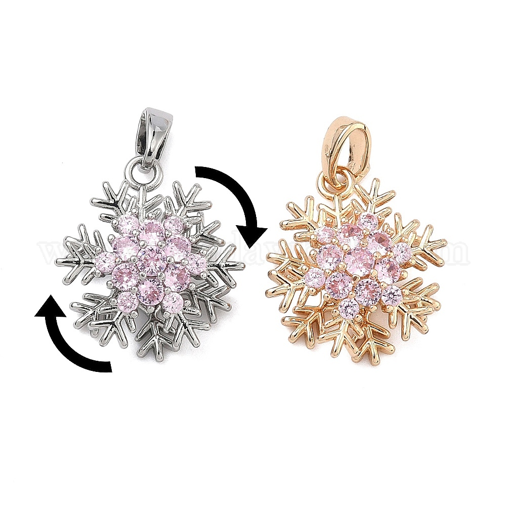 Рождественские латунные подвески с микропаве из кубического циркония, вращающиеся, долговечный, прелести снежинки
