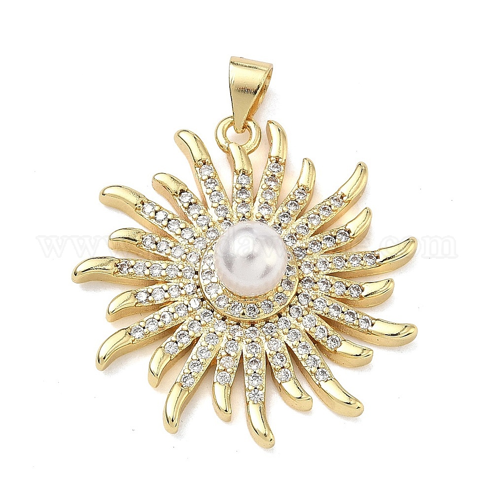 Латунные микро проложить кубического циркония подвески, с ABS имитации жемчуга, солнечные чары, без свинца и без кадмия, стойки покрытие, долговечный