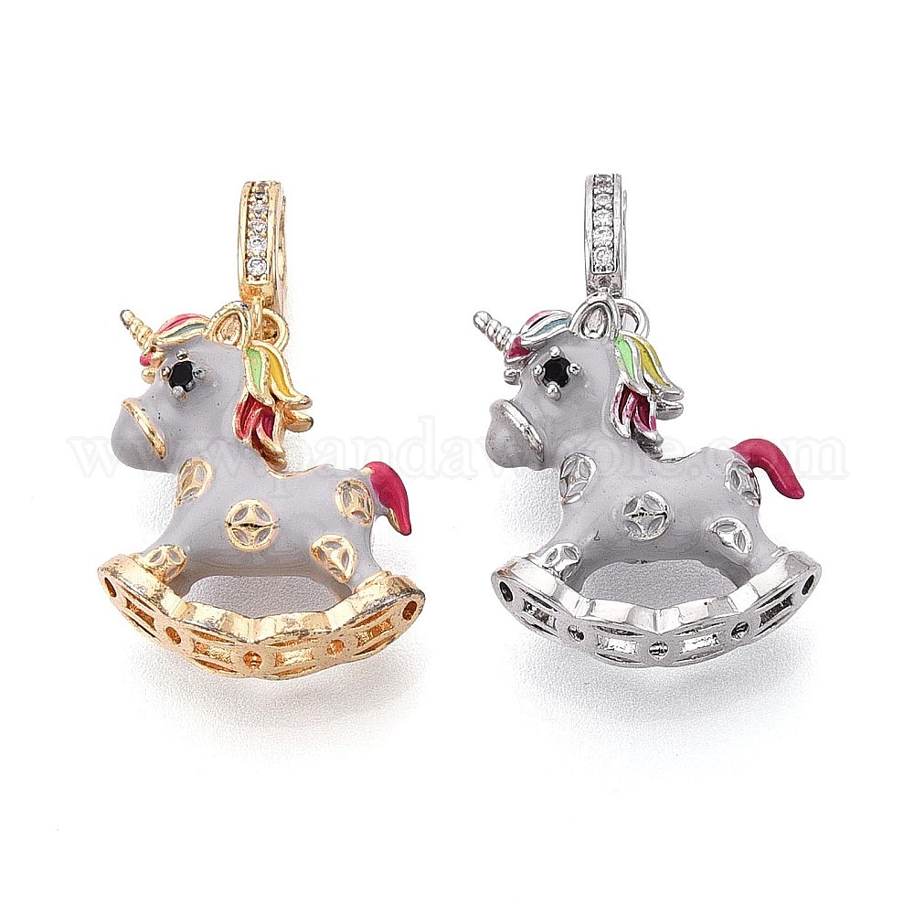 Подвески из латуни с микропаве из кубических цирконий и эмали, прелести единорога, светло-серый