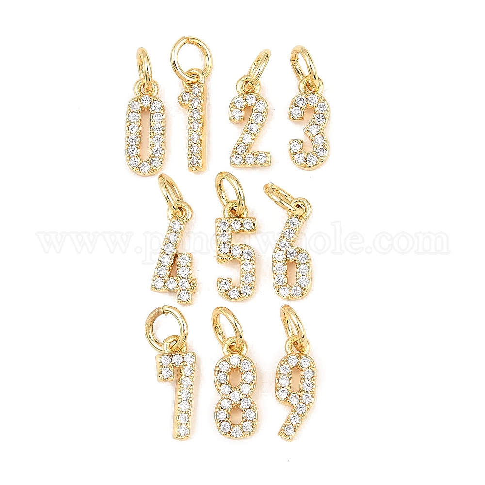Латунные микропаве прозрачные подвески с фианитом, числовые прелести