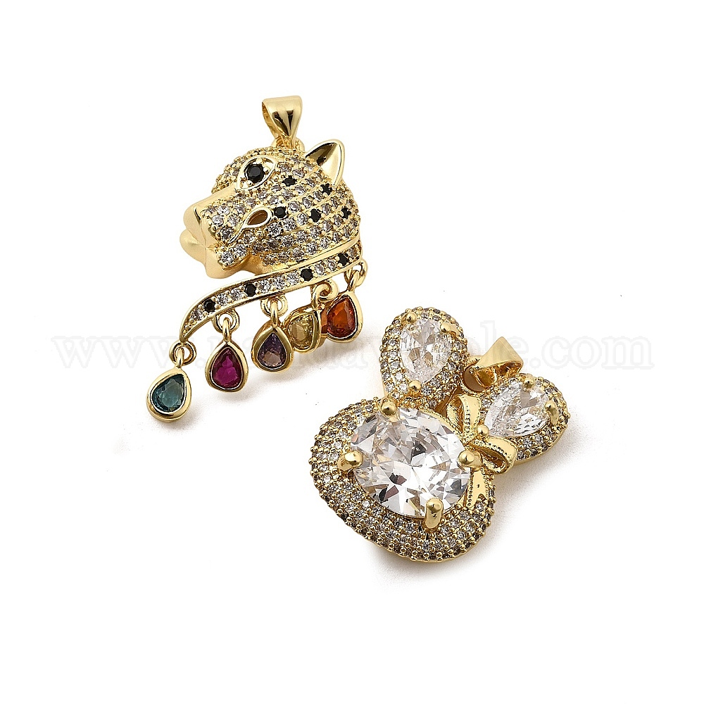 Латунные микропаве прозрачные подвески с фианитом, долговечный, стойки покрытие, без свинца и без кадмия, реальный 18 k позолоченный