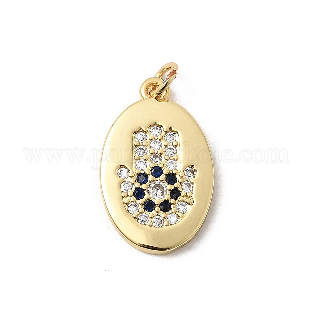 Латунные микро проложить кубического циркония подвески, долговечный, стойки покрытие, без свинца и без кадмия, овальный с подвесками в виде руки хамса