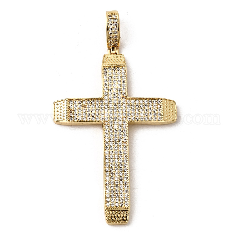 Латунные микропаве прозрачные подвески с фианитом, долговечный, стойки покрытие, без свинца и без кадмия, крест прелести