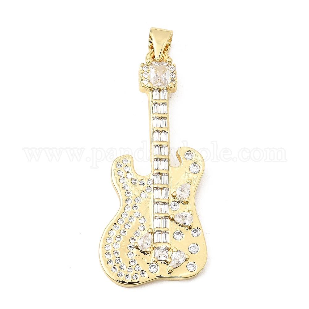 • Настоящее золото 18K Латунные микропаве прозрачные подвески с фианитом, долговечный, стойки покрытие, без свинца и без кадмия, гитарные прелести, реальный 18 k позолоченный, 37x16x3.5 мм, отверстие : 4.5x3.5 мм