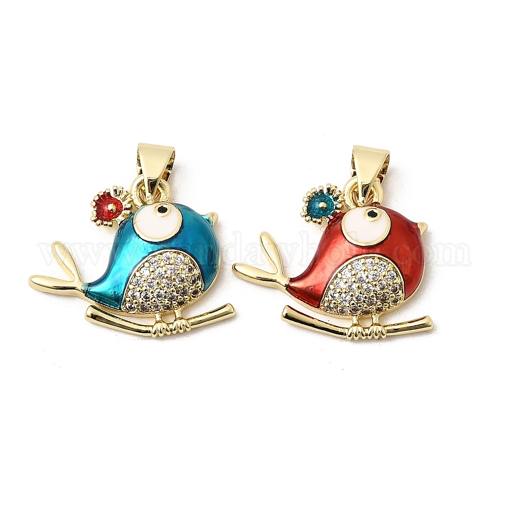 Латунные микро проложить кубического циркония подвески, с эмалью, долговечный, стойки покрытие, без свинца и без кадмия, амулеты птиц, реальный 18 k позолоченный