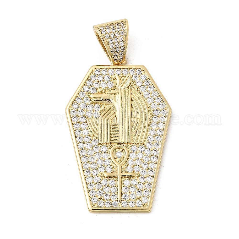 Латунные микропаве прозрачные подвески с фианитом, Анубис, бог смерти, чары, долговечный, стойки покрытие, без свинца и без кадмия (03AXXQ)