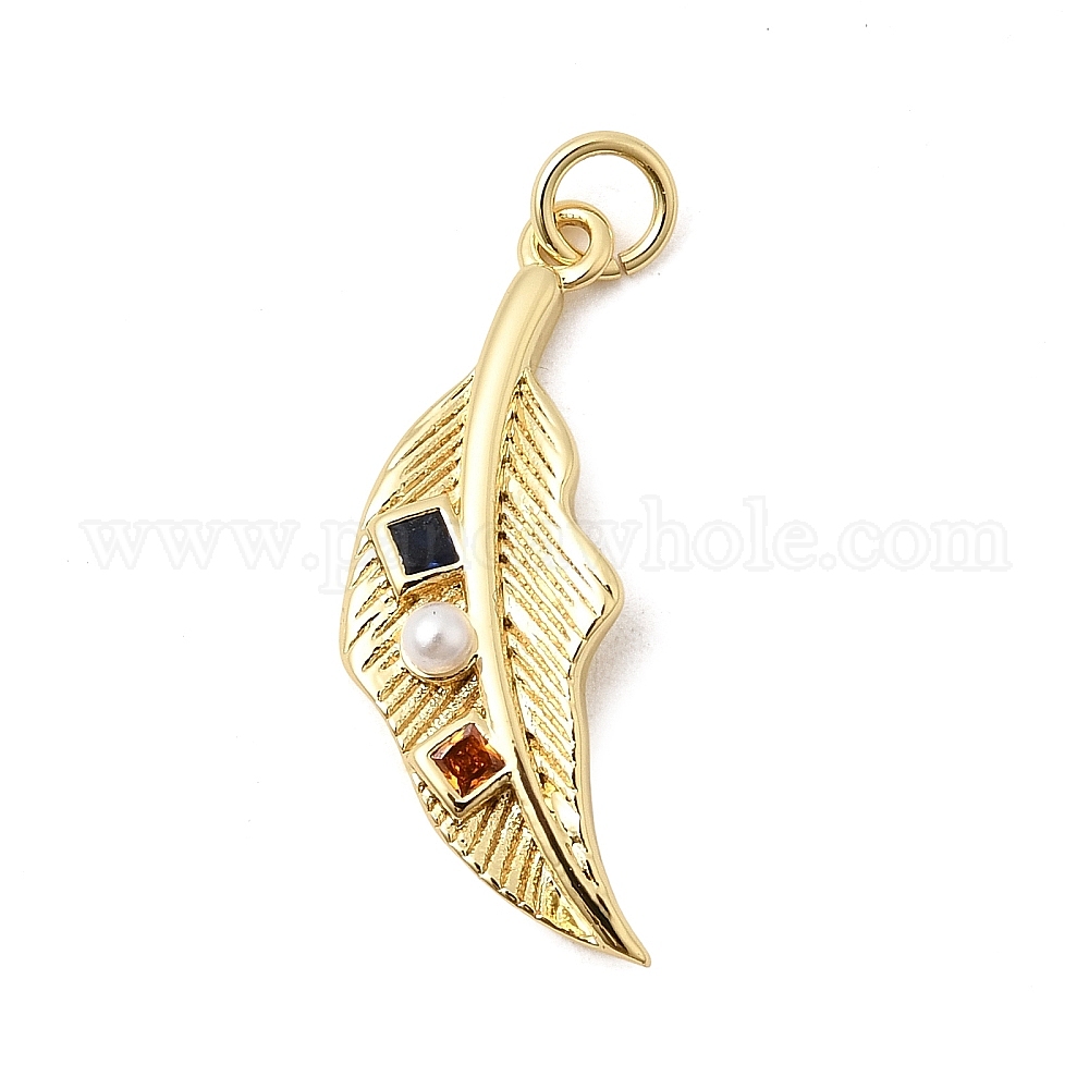 Латунные микро проложить кубического циркония подвески, с ABS имитации жемчуга, долговечный, стойки покрытие, без свинца и без кадмия, лист прелести