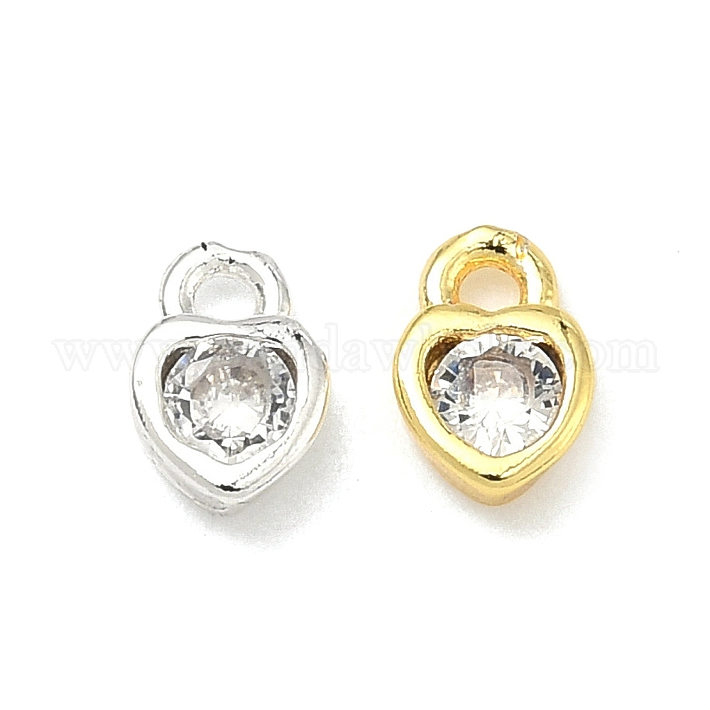 • Золотой Латунные микропаве прозрачные кубические циркониевые подвески, сердце прелести, долговечный, стойки покрытие, золотые, 7x4.5x2 мм, отверстие : 1 мм