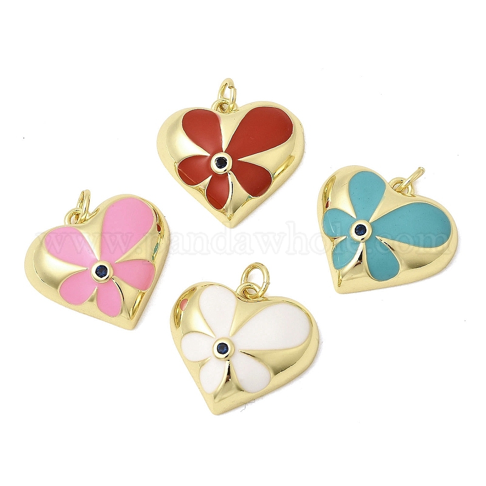 Латунные микро проложить кубического циркония подвески, с эмалью, долговечный, стойки покрытие, без свинца и без кадмия, сердце прелести, реальный 18 k позолоченный