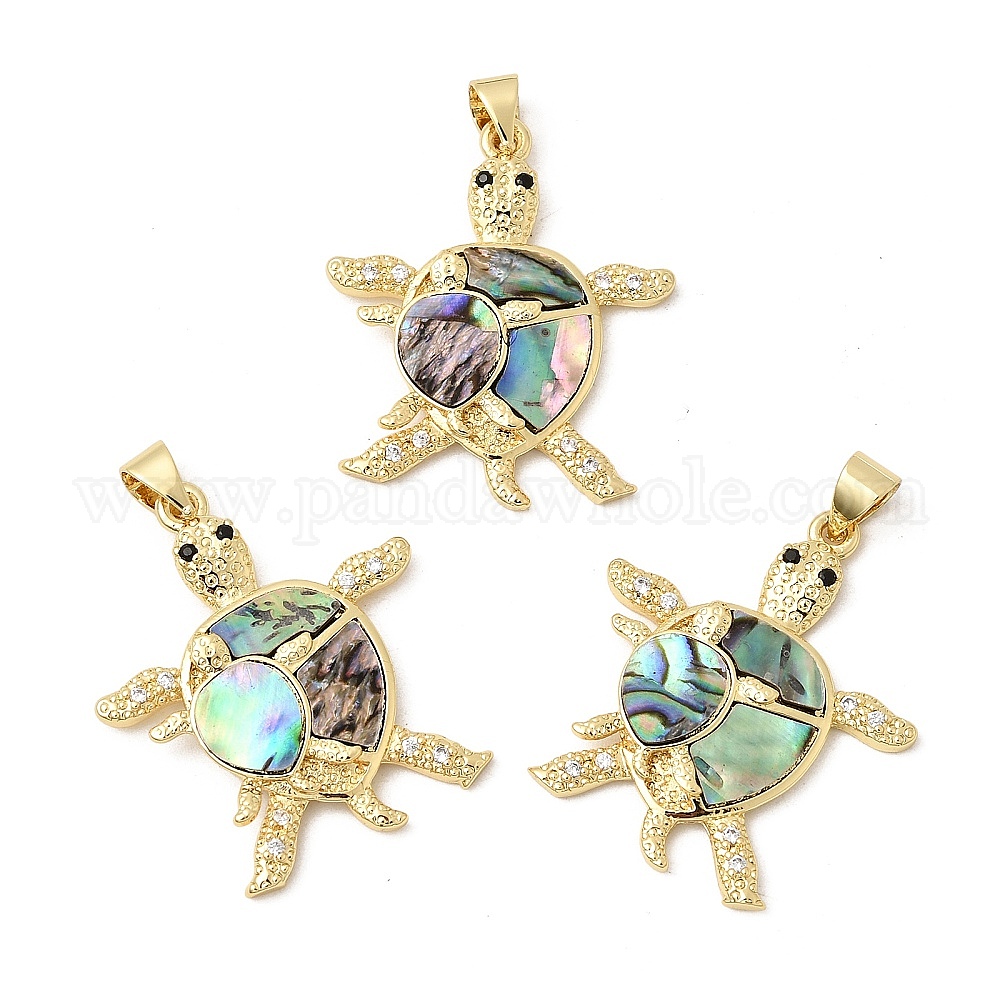 • Настоящее золото 18K Латунные микро проложить кубического циркония подвески, с натуральной раковиной морского ушка/пауа, долговечный, стойки покрытие, без свинца и без кадмия, черепаховый шарм, реальный 18 k позолоченный, 28x24x3 мм, отверстие : 4x3.5 мм