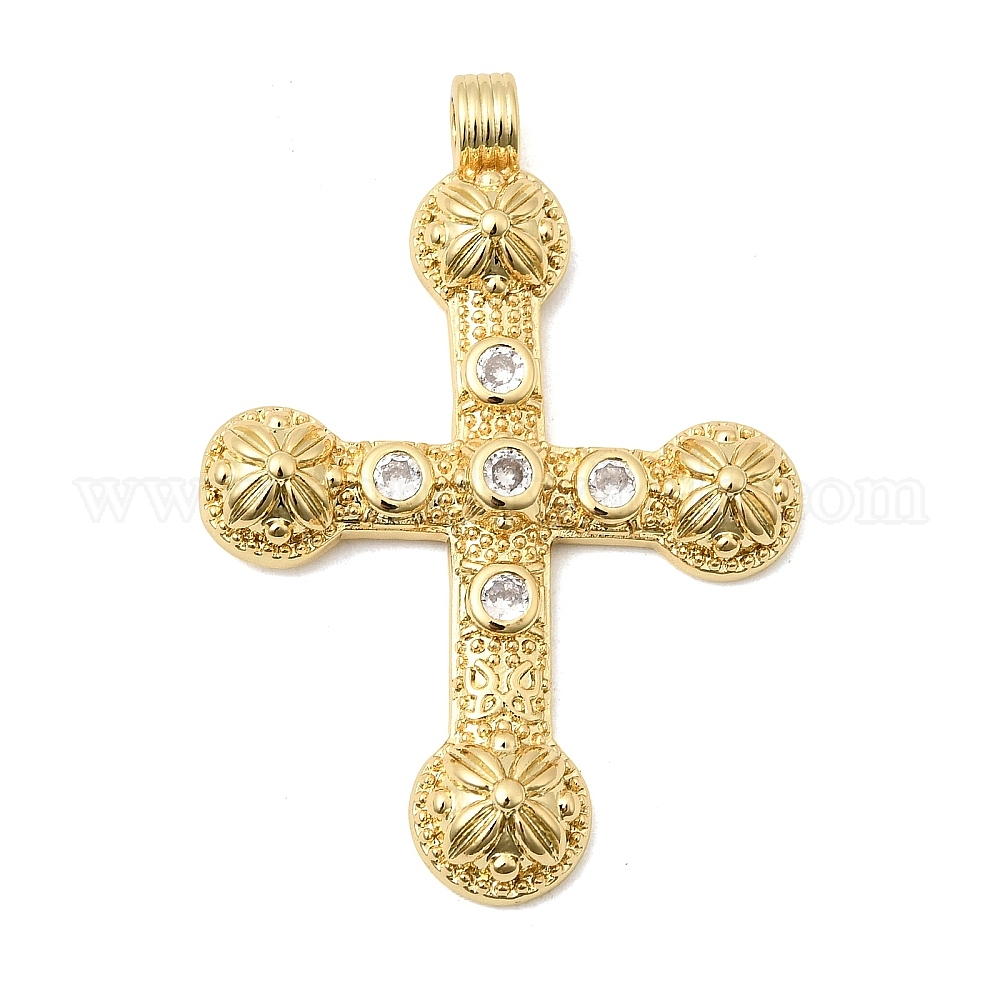 • Настоящее золото 18K Латунные микропаве прозрачные подвески с фианитом, долговечный, стойки покрытие, без свинца и без кадмия, крест прелести, реальный 18 k позолоченный, 41.5x29.5x5 мм, отверстие : 2 мм