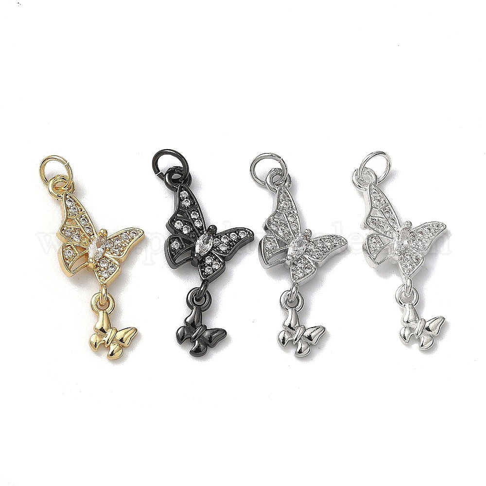 Латунные микропаве прозрачные подвески с фианитом, без кадмия и без свинца, стойки покрытие, долговечный, бабочки прелести