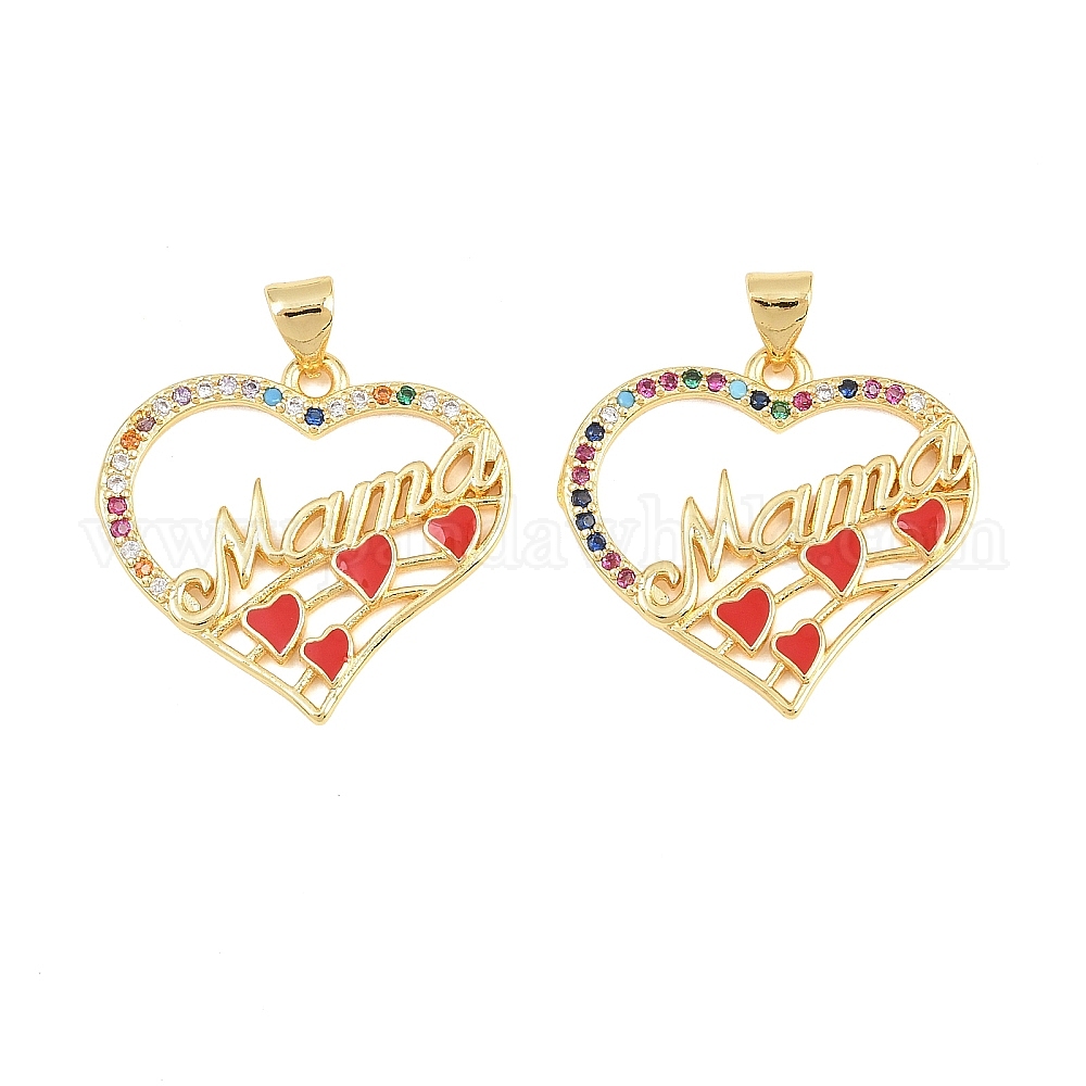 Латунные микро проложить кубического циркония подвески, с эмалью, без кадмия и без свинца, стойки покрытие, долговечный, сердце со словом мама прелести, День матери