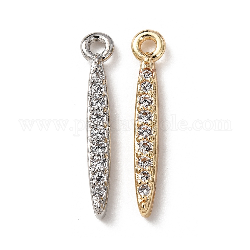 • Платина Латунные микропаве прозрачные подвески с фианитом, долговечный, стойки покрытие, палочные амулеты, платина, 16.5x3x2 мм, отверстие : 1.2 мм