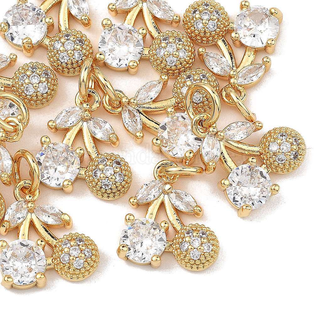 • Настоящее золото 18K Латунные микропаве прозрачные подвески с фианитом, без кадмия, без никеля и без свинца, черри прелести, реальный 18 k позолоченный, 12.5x11.5x4 мм, Перейти кольцо: 5x1 мм, внутренний диаметр: 3 мм