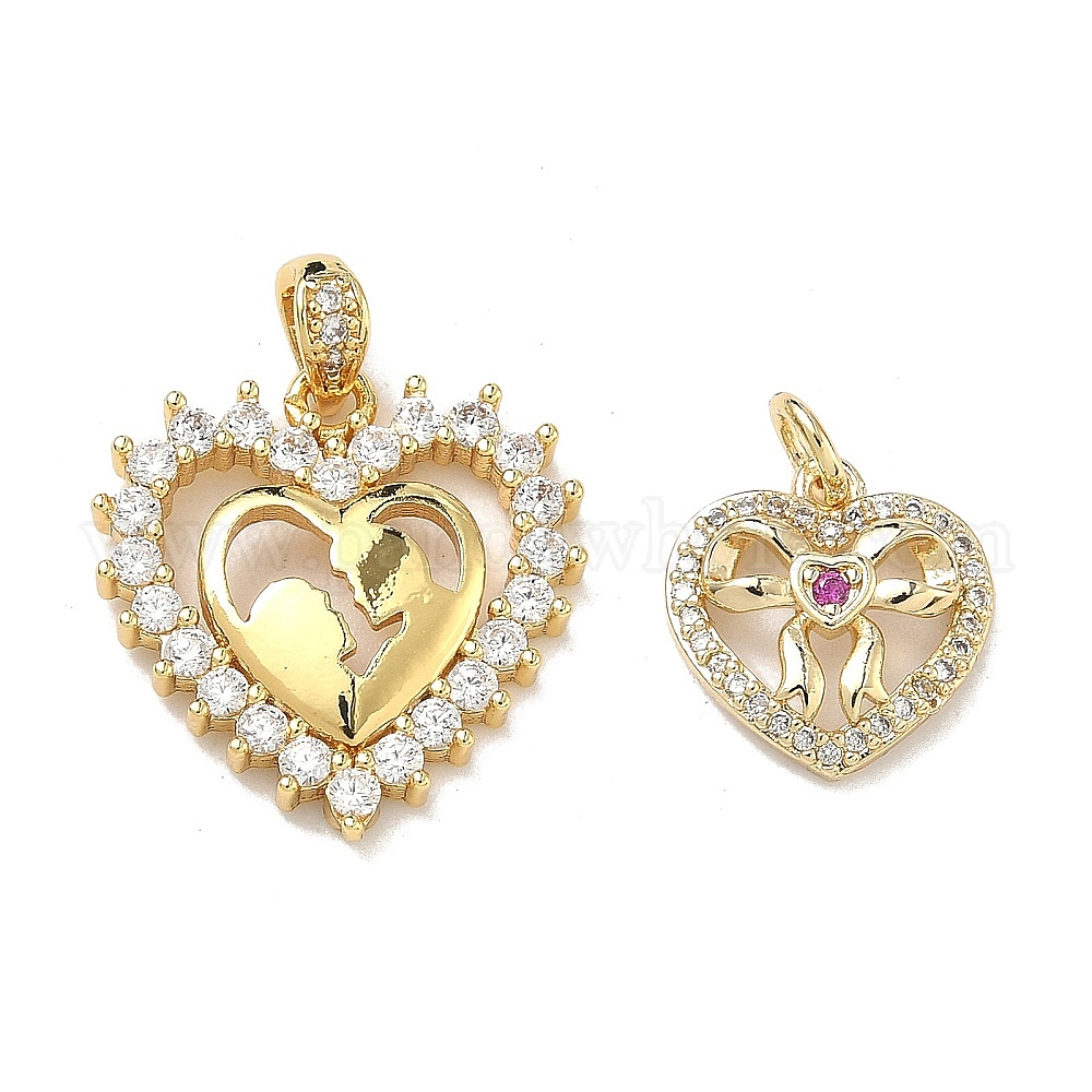 Латунные микро проложить кубического циркония подвески, сердце прелести, стойки покрытие, долговечный, без кадмия и без свинца, золотые