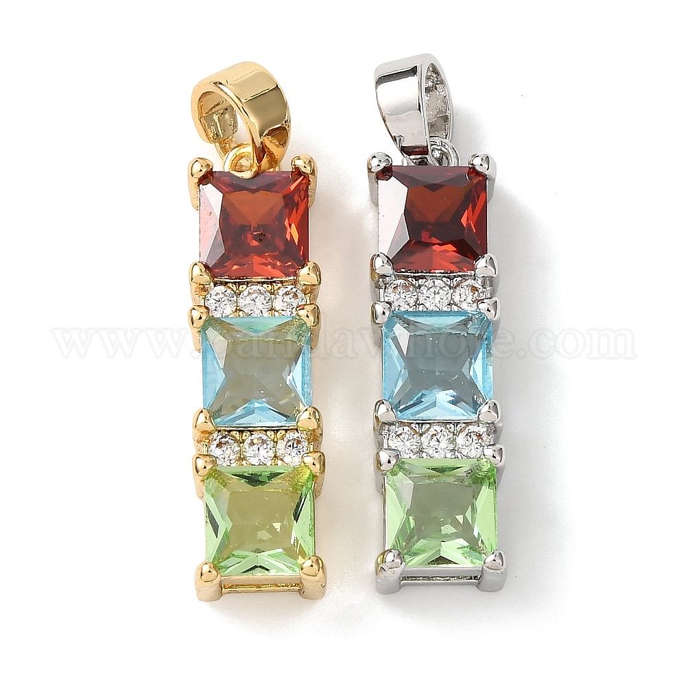 Латунные микро проложить кубического циркония подвески, прямоугольник амулеты, долговечный, красочный