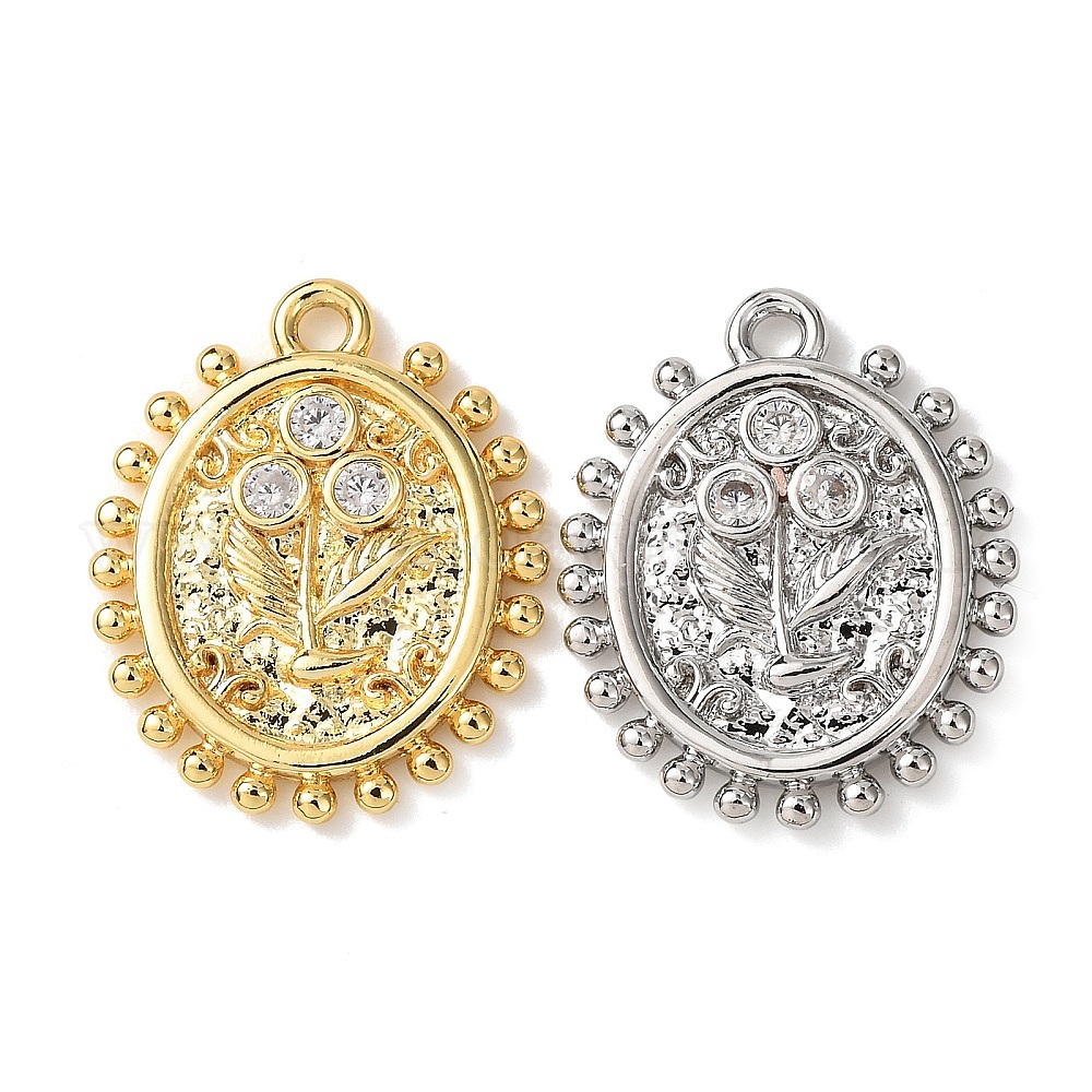 Латунные микро проложить кубического циркония подвески, овал с цветочными подвесками, долговечный