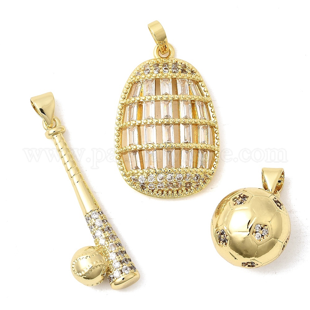 Подвески из латуни с микропаве и прозрачными кубическими циркониями в спортивной тематике, долговечный, без кадмия и без свинца, стойки покрытие