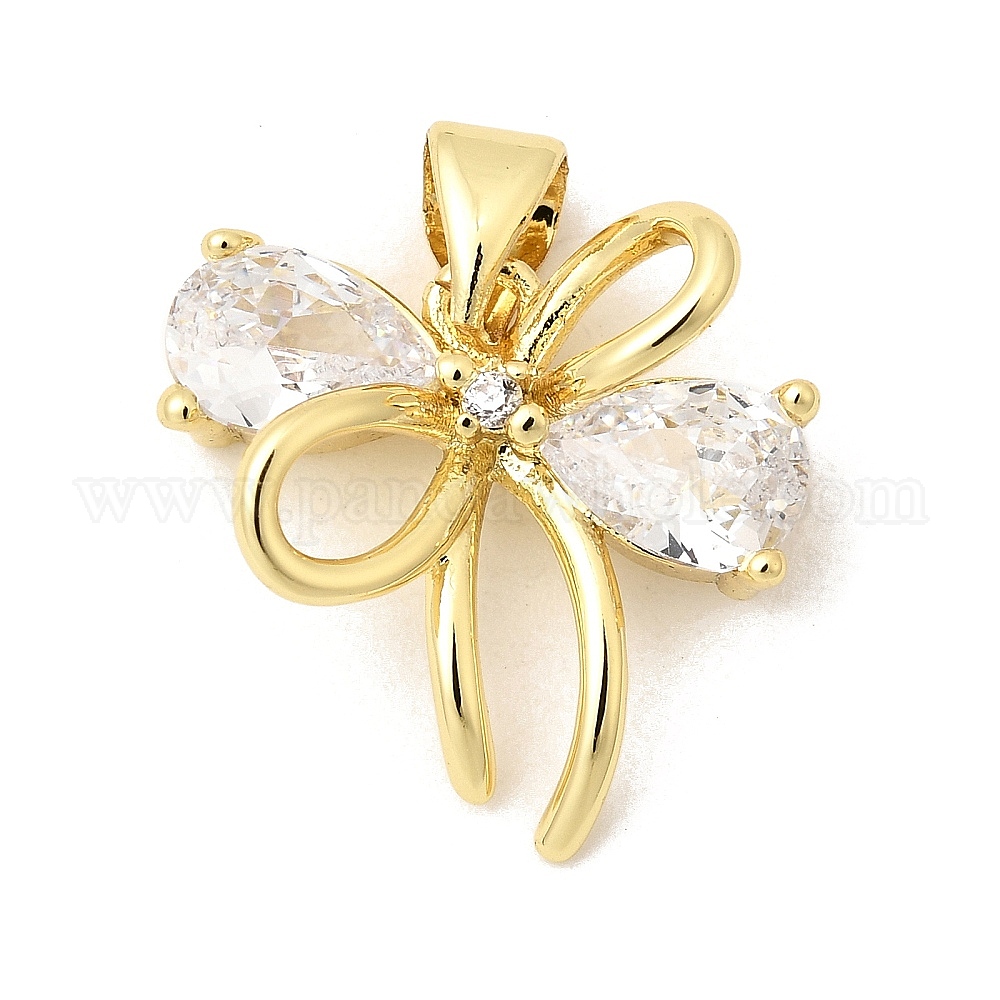 Латунные микропаве прозрачные подвески с фианитом, бантом прелести, долговечный, без кадмия и без свинца, стойки покрытие
