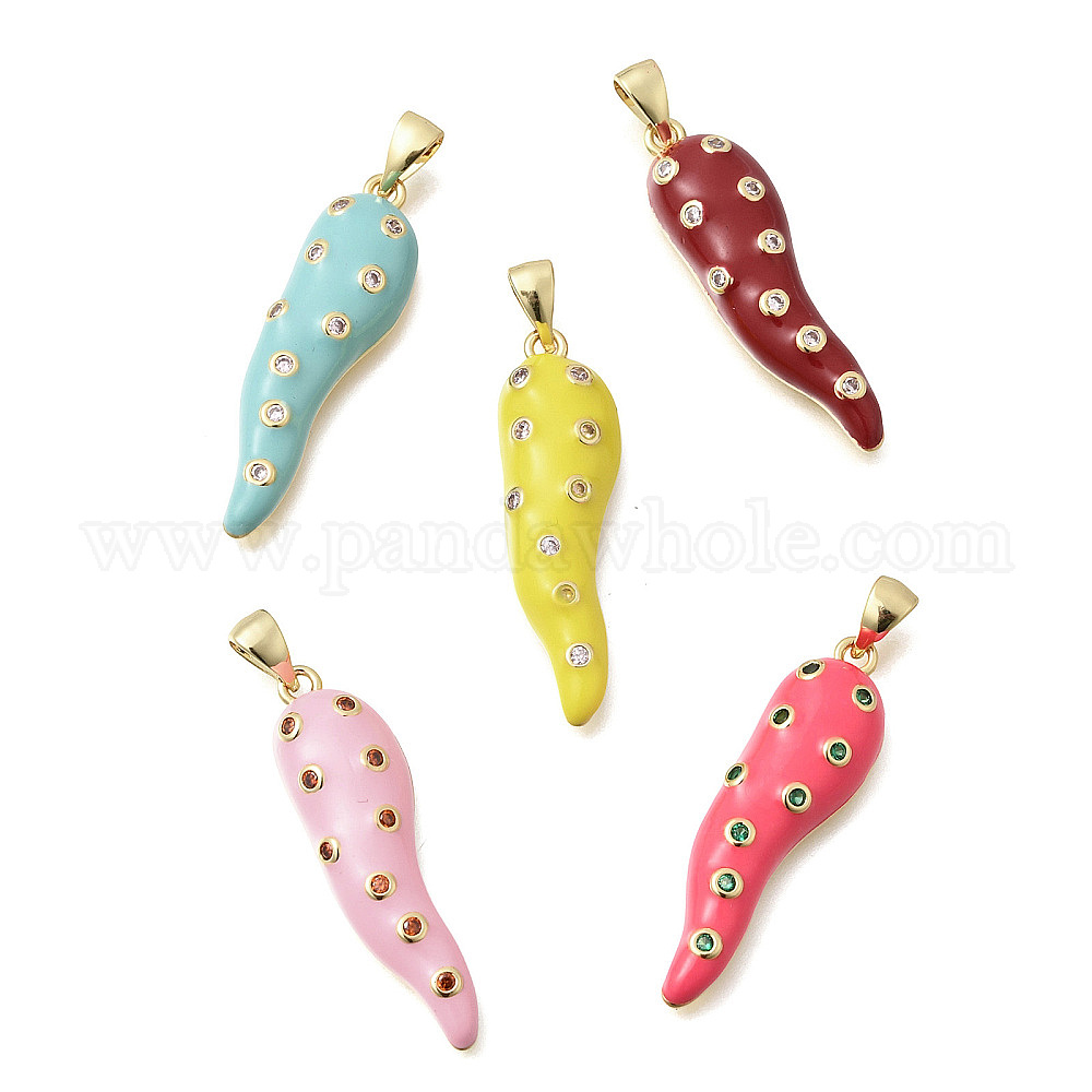 Латунные микро проложить кубического циркония подвески, с эмалью, рога прелести, без кадмия и без свинца, стойки покрытие, долговечный, реальный 18 k позолоченный