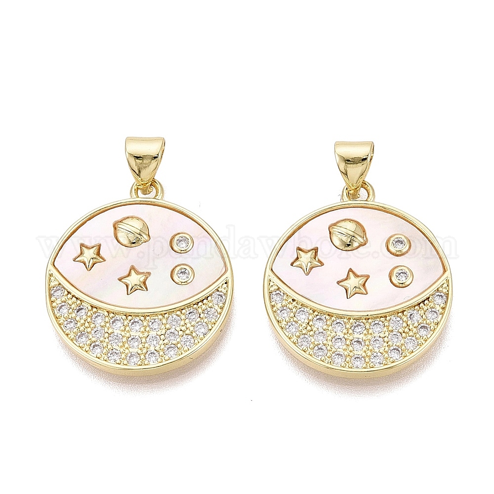Латунные микропаве прозрачные подвески с фианитом, с оболочкой, плоская круглая форма с подвесками в виде неба