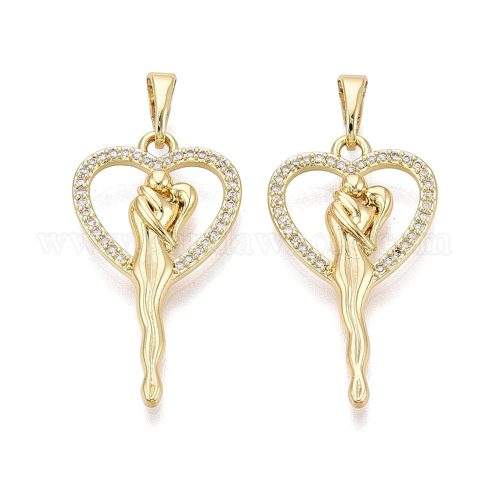 Подвески из латуни с микро-паве ко Дню святого Валентина, прозрачные циркониевые подвески, пара с подвесками в виде сердечек