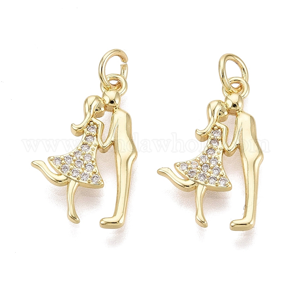 Подвески из латуни с микро-паве ко Дню святого Валентина, прозрачные циркониевые подвески, пара прелестей