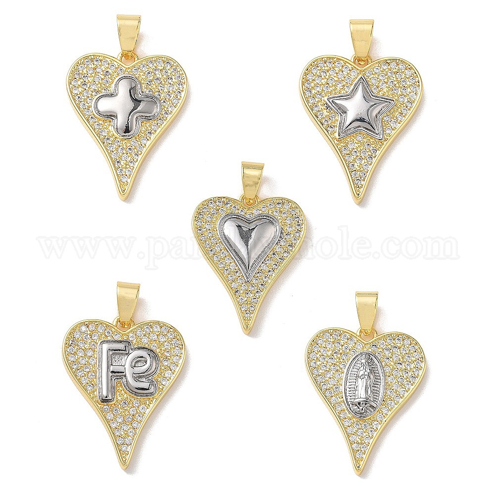Двухцветные латунные подвески с микропаве из прозрачных кубических цирконий, сердце прелести, стойки покрытие, долговечный, без кадмия и без свинца
