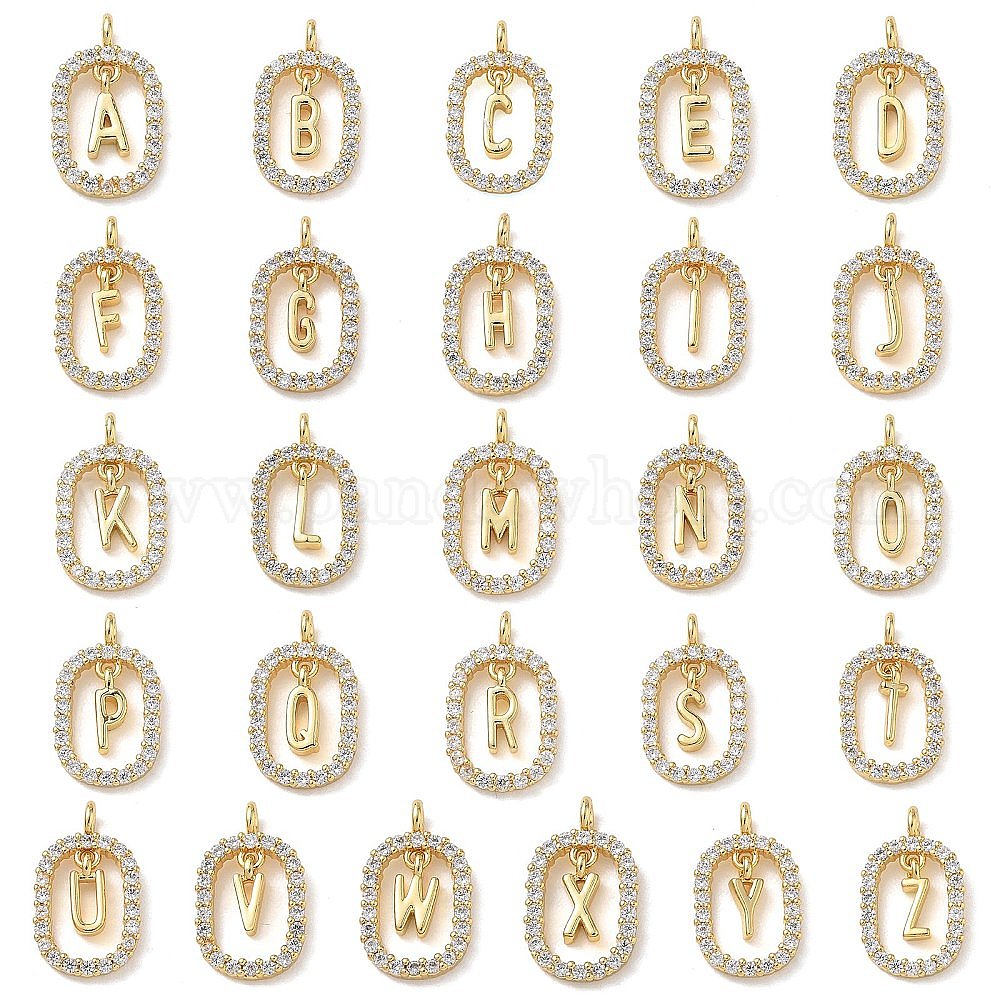 Латунные микропаве прозрачные подвески с фианитом, овал с подвесками в виде букв, стойки покрытие, долговечный, без кадмия и без свинца