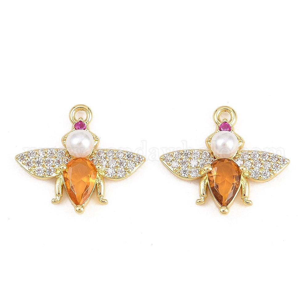 Латунные микро проложить кубического циркония подвески, с пластмассовой жемчужиной abs, стойки покрытие, долговечный, без свинца и без кадмия, насекомые талисманы