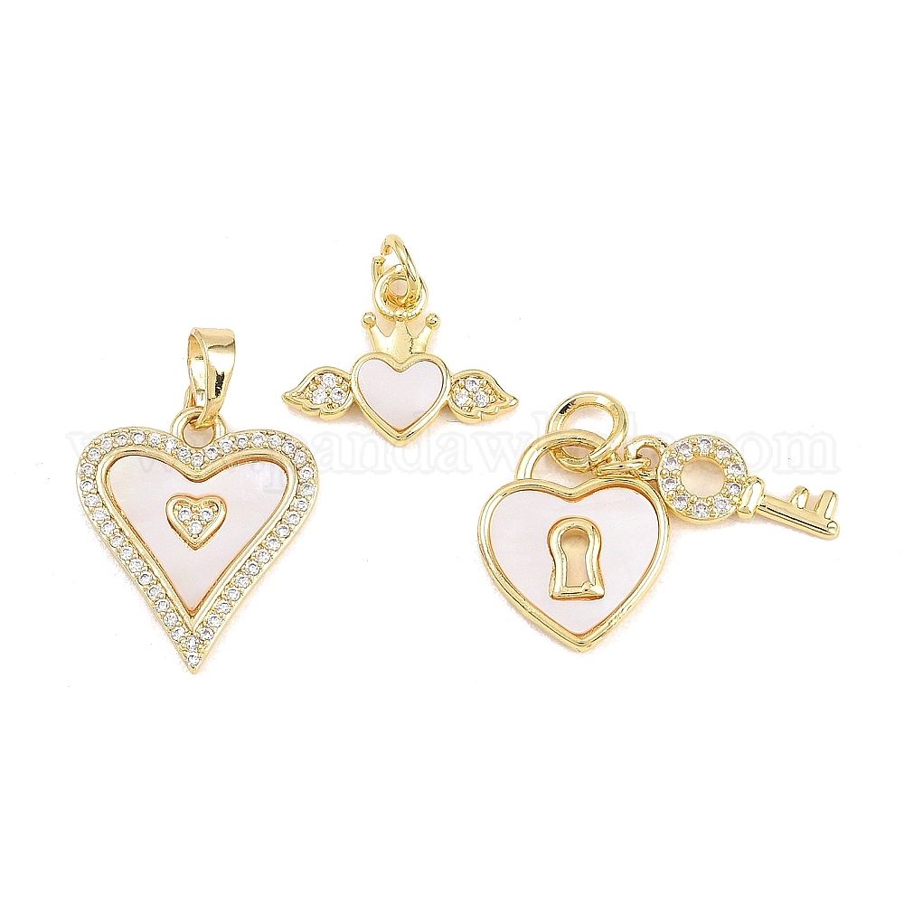 Подвески из латуни с микро-паве ко Дню святого Валентина, прозрачные циркониевые подвески, с естественной оболочке, сердце прелести, без кадмия и без свинца