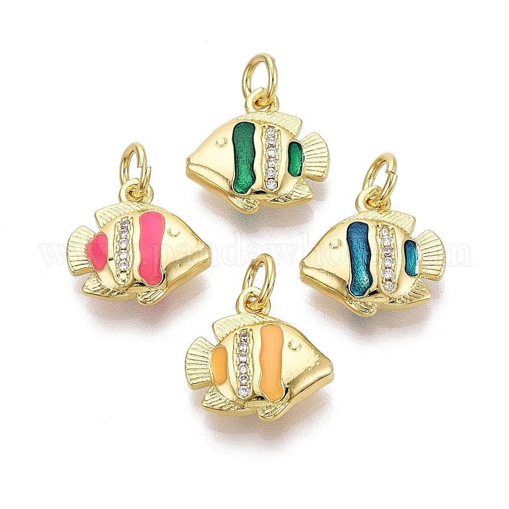 Латунные микропаве прозрачные подвески с фианитом, рыбы прелести, с эмалью, золотые