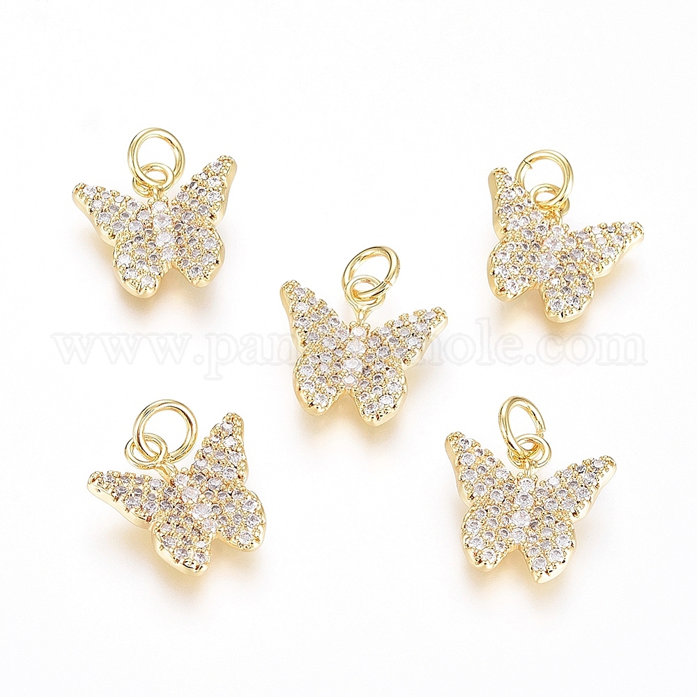 • Настоящее золото 18K Латунные микро проложить кубического циркония подвески, долговечный, с целью перехода в кольце, бабочка, прозрачные, реальный 18 k позолоченный, 13x13x2.5 мм, отверстие : 3 мм