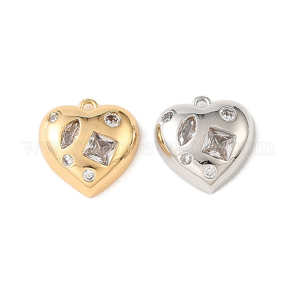 Подвески из латуни и прозрачного циркония, Подвески в виде сердца с конским глазом и квадратным узором.
