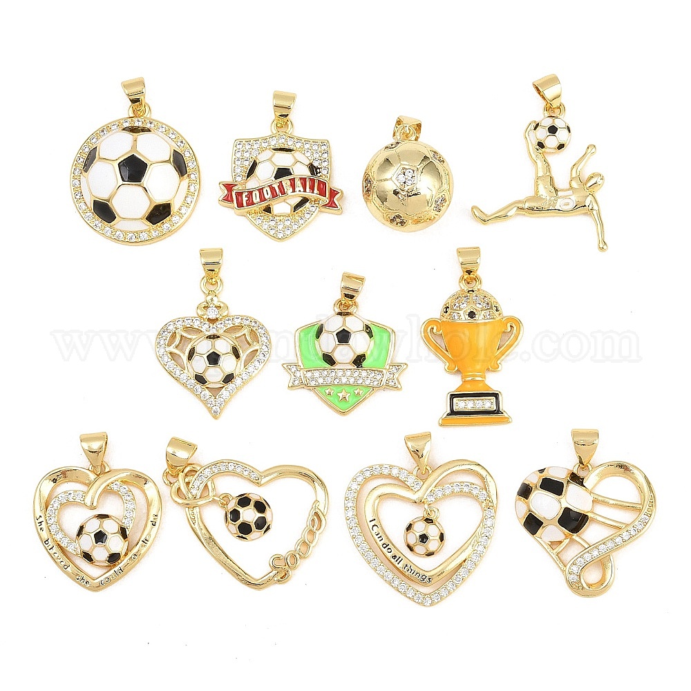 Футбольные латунные подвески с микропаве из кубического циркония, с эмалью, золотые