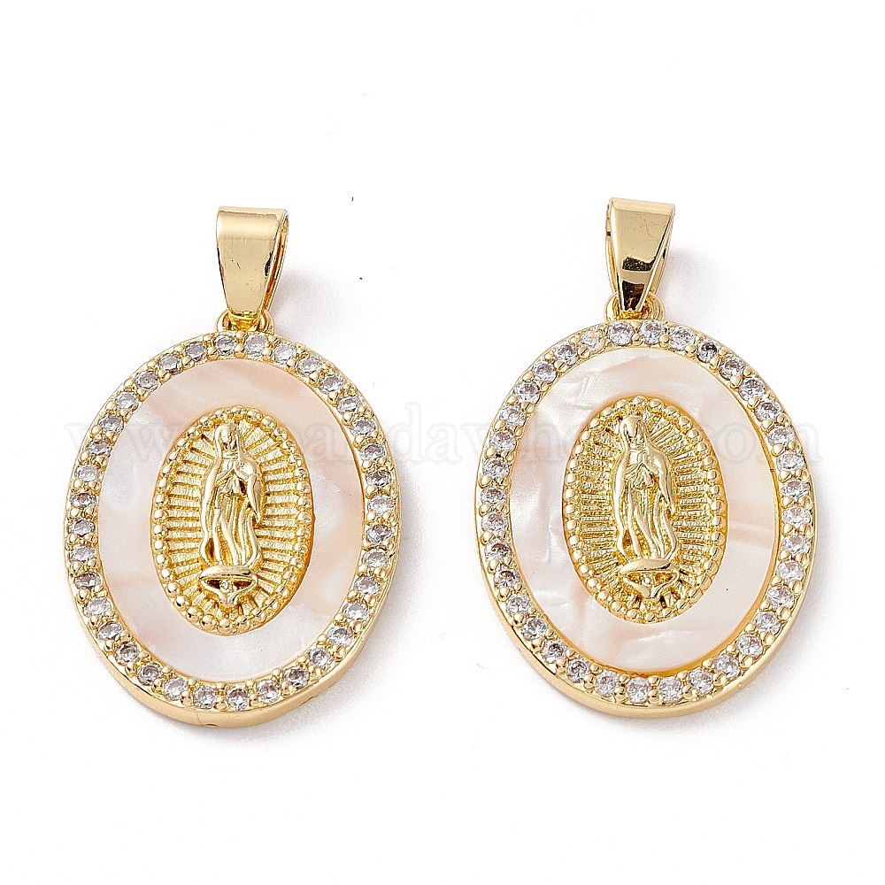 Латунные микропаве прозрачные подвески с фианитом, леди гваделупской чары, долговечный, овальные с рисунками " virgin mary"