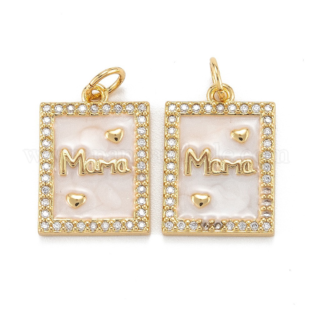 Подвески из латуни с микро паве ко Дню матери, прозрачные подвески с кубическим цирконием, с эмалью и кольцами для прыжков, прямоугольник со словом мама