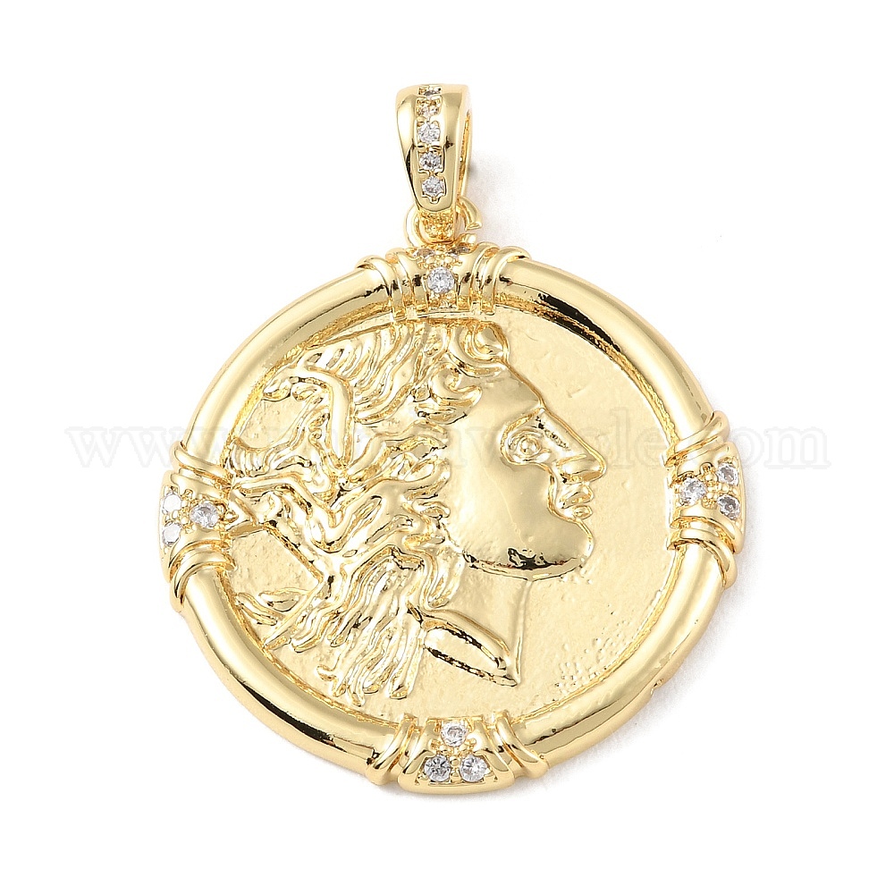 Латунные микро проложить кубического циркония подвески, долговечный, реальный 18 k позолоченный, без кадмия и без свинца, плоско-круглые