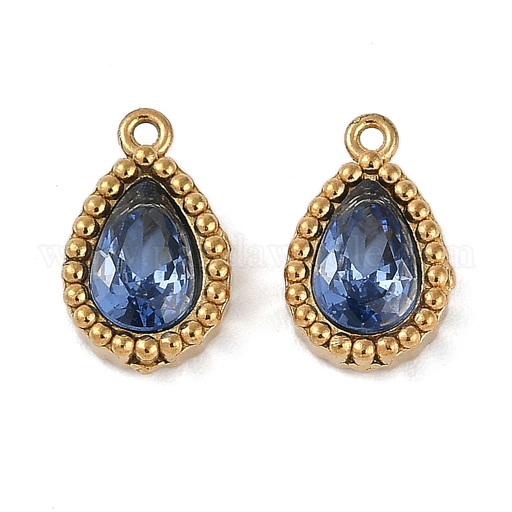 • Королевский синий Ионное покрытие (ip) 304 подвески из нержавеющей стали с микропаве из кубического циркония, реальный 18 k позолоченный, очарование слезы, королевский синий, 10.5x6.5x3 мм, отверстие : 0.9 мм