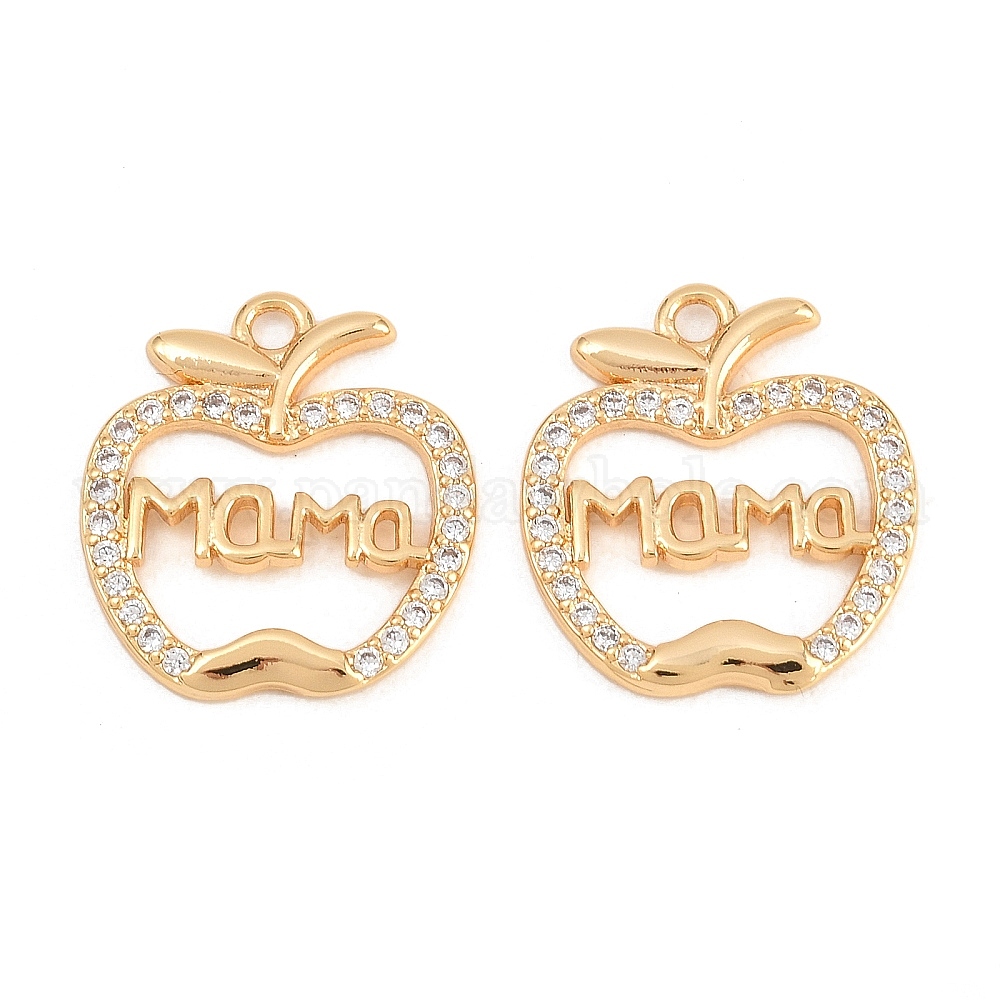 Подвески из латуни с микро паве ко Дню матери, прозрачные подвески с кубическим цирконием, без никеля , яблоко с подвесками «Мама»