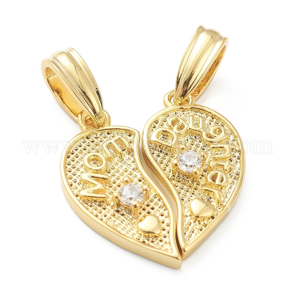 • Настоящее золото 18K День матери латунные подвески из кубического циркония, долговечный, сердце со словом мама и дочь, реальный 18 k позолоченный, 19x17.5x3 мм, отверстие : 3 мм