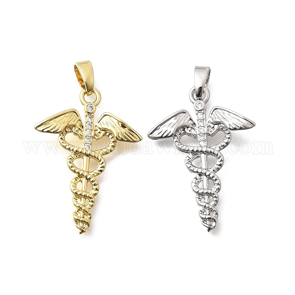 • Платина Латунные подвески с фианитами, крылья с подвесками в виде мечей, долговечный, платина, 25x13x3 мм, отверстие : 5 мм