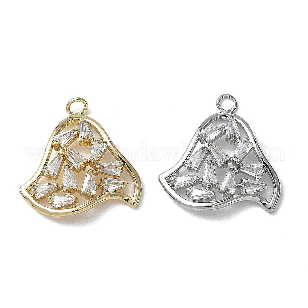 • Платина Латунные микропаве подвески с прозрачными кубическими циркониями, треугольник прелести, платина, 17.5x16.5x4 мм, отверстие : 1.6 мм