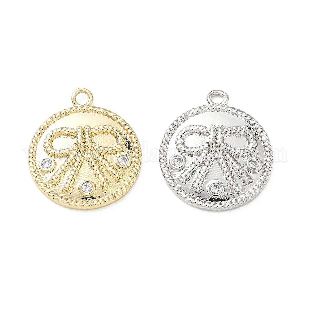 Рамадан и Ид Мубарак, латунные подвески с микропаве из прозрачного кубического циркония, плоский круглый с подвесками-бантиками