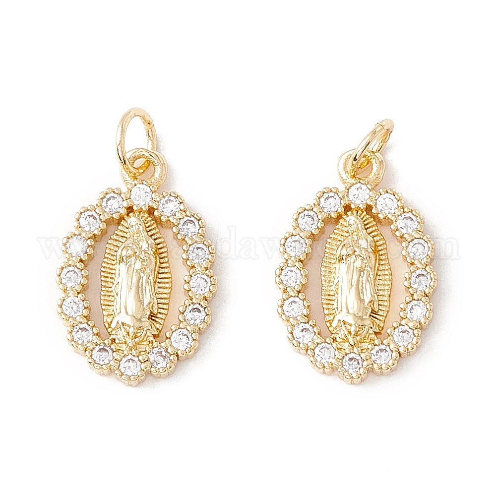 • Настоящее золото 18K Покрытие стойки латунь микропаве прозрачные подвески из кубического циркония, с прыжковых колец, долговечный, без кадмия и без свинца, овальные с рисунками " virgin mary", реальный 18 k позолоченный, 17.5x12x3 мм, отверстие : 3.2 мм
