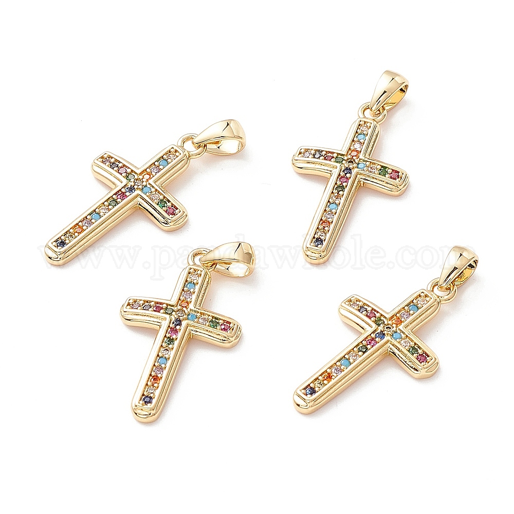 Латунные микро-паве красочные кубические циркониевые подвески, долговечный, без свинца, без кадмии и без никеля, крестик