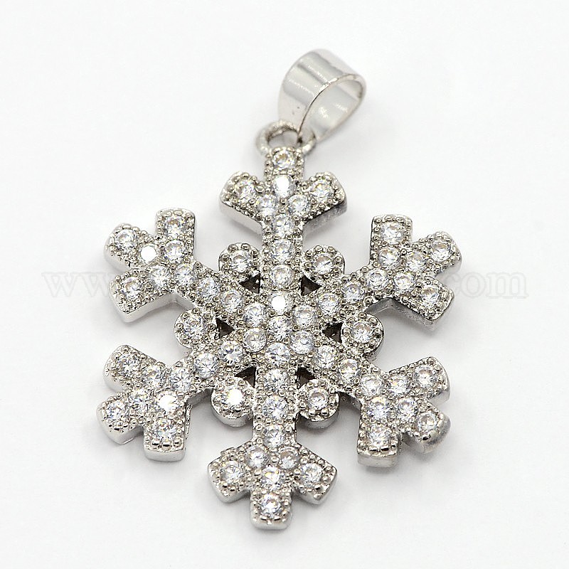 CZ Рождественские украшения из латуни микро проложить кубического циркония снежинка подвески, 22x17x2 мм, отверстие : 3 мм